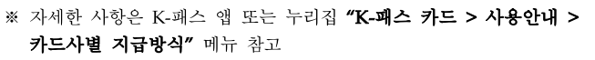 * 자세한 사항은 K-패스 앱 및 누리집 내 K-패스 카드 > 카드 소개 메뉴 참조